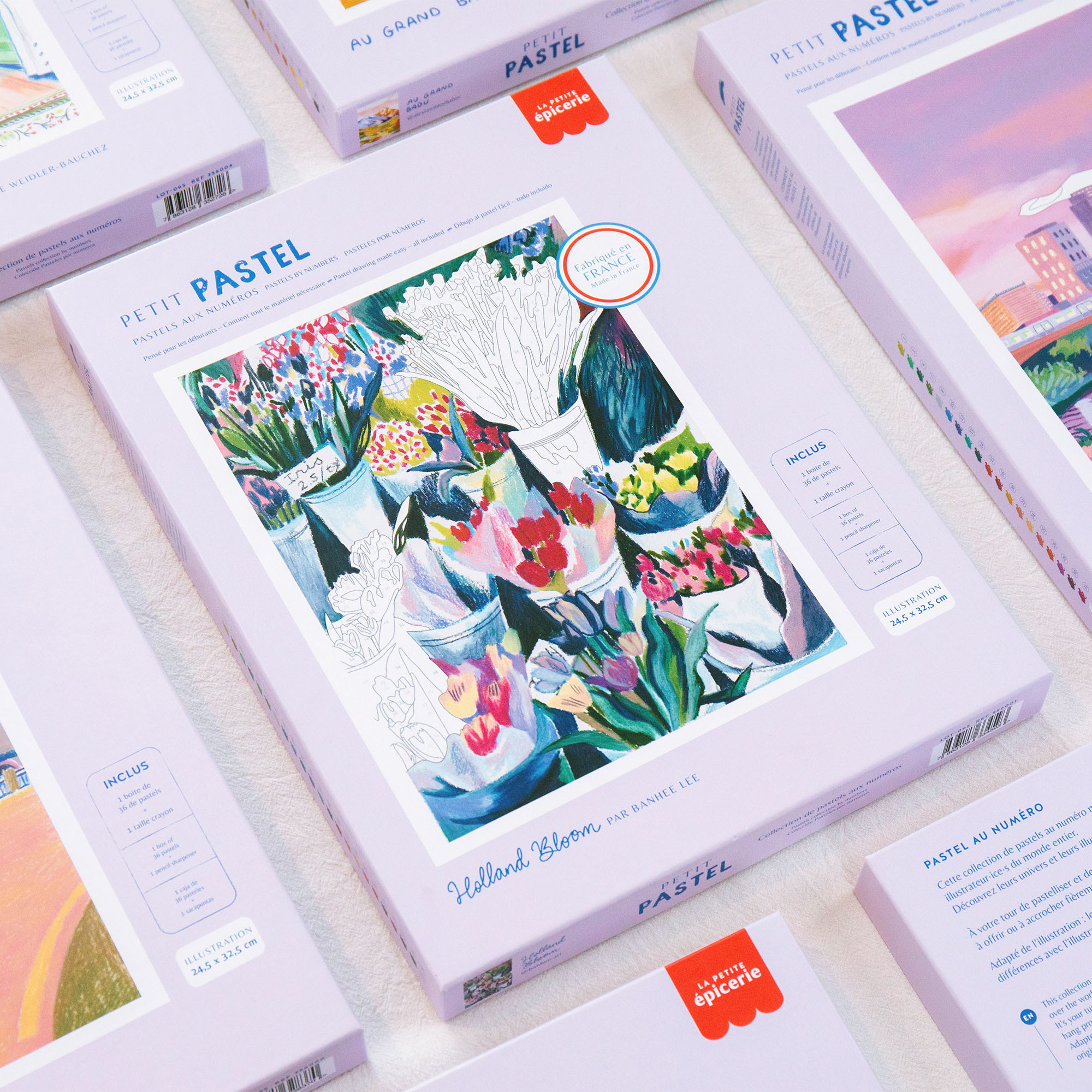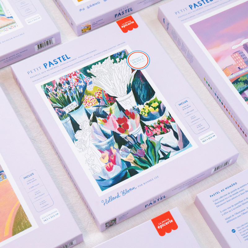 La Petite Épicerie vous plonge dans un univers floral avec le kit de pastel aux numéros Petit Pastel – Holland Bloom, illustré par Banhee Lee et fabriqué en France.