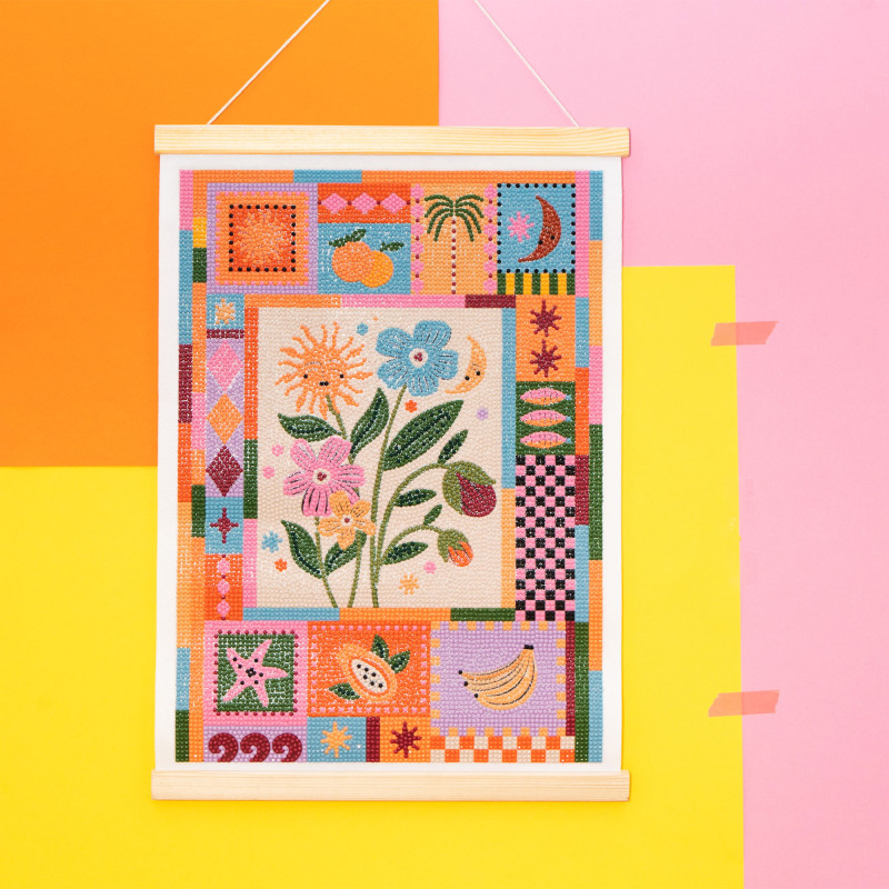 Cosmo Sun diffuse une ambiance joyeuse et optimiste, parfaite pour la saison printemps été. Ce diamond painting combine plaisir de création, détente et fort impact décoratif, un choix évident pour séduire une clientèle en quête de nouveauté et de bonne humeur.