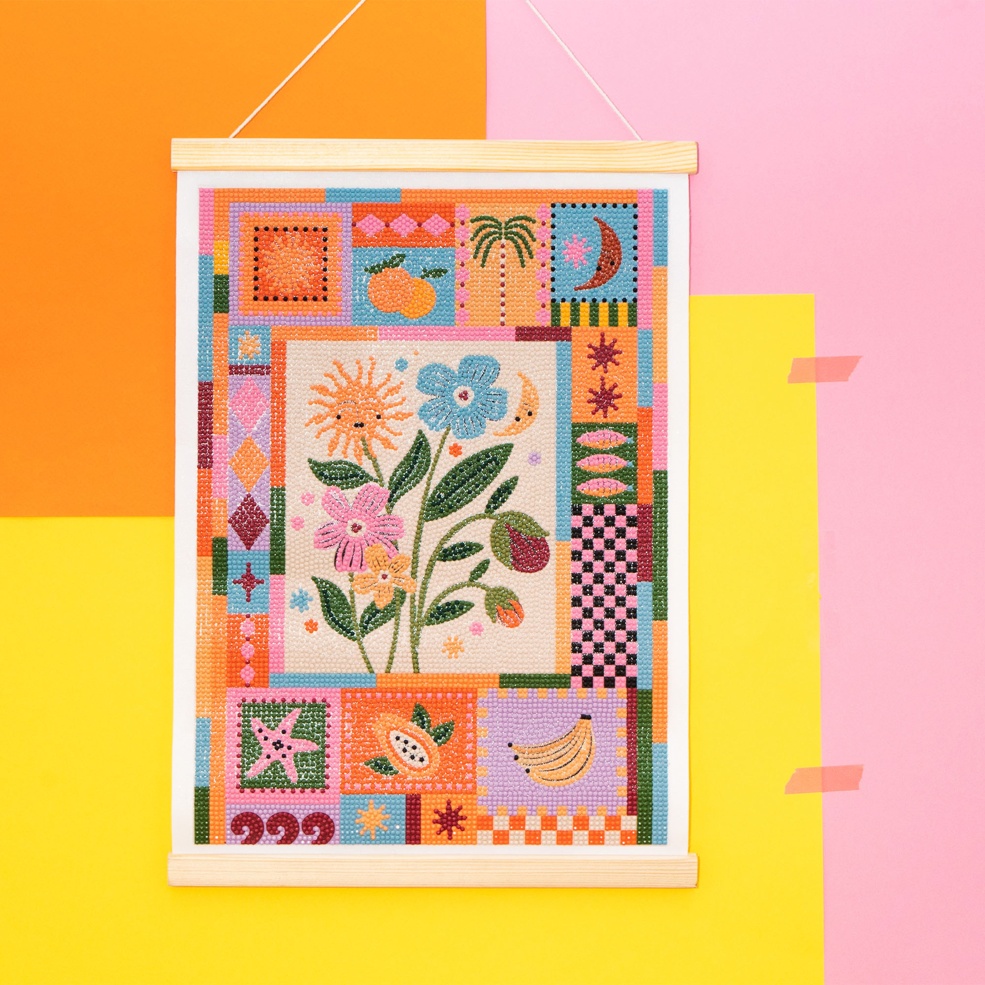 La collection de Diamond Painting s'élargie avec des modèles frais et audacieux comme le Petit Diamond Cosmo Sun ! Un modèle solaire et graphique, inspiré des motifs vintage et des couleurs chaudes des beaux jours à créer un diamant après l'autre.