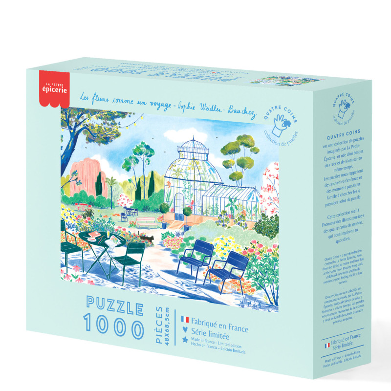 Avec Les fleurs comme en voyage de Sophie Weidler-Bauchez, La Petite Épicerie vous invite à une parenthèse poétique et contemplative. Cette illustration lumineuse évoque un jardin foisonnant, entre nature, architecture et douceur de vivre, offrant une atmosphère apaisante et élégante en 1000 pièces.