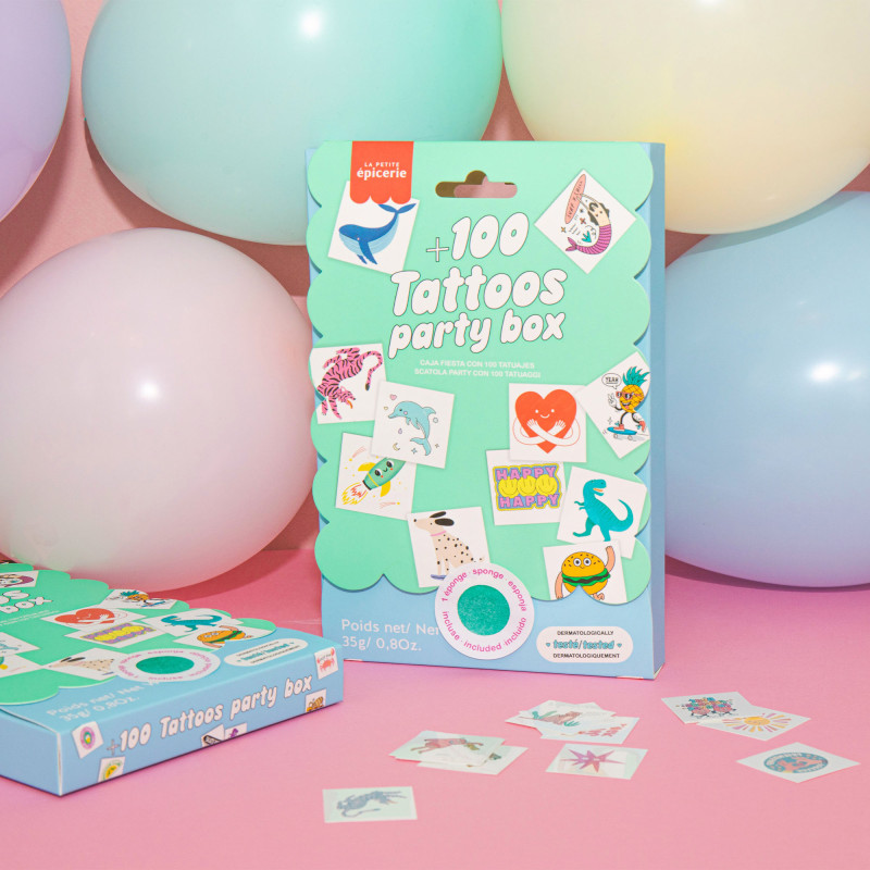 La Tattoos Party Pack est un pack festif de 100 tatouages temporaires, idéal pour animer facilement anniversaires, fêtes d’enfants et ateliers créatifs. Ludique, colorée et simple à utiliser, elle plaît immédiatement aux enfants dès 3 ans et rassure les adultes grâce à des tatouages testés dermatologiquement.